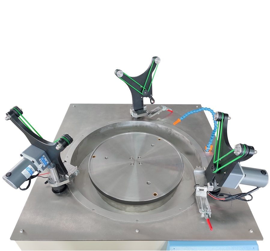 | 主要參數(shù) | 1.研磨盤(pán):直徑φ508mm(20英寸) (標(biāo)配不含研磨盤(pán),具體材質(zhì)請(qǐng)咨詢銷售) 2.載樣盤(pán):直徑φ160mm(6英寸),厚度35mm 3.修盤(pán)環(huán):外徑φ196mm,內(nèi)徑φ160.5mm,厚度36mm 4.擺臂支架:每120°設(shè)置1個(gè),共3個(gè) 5.工位數(shù)量:3個(gè) 6.研磨盤(pán)轉(zhuǎn)速:轉(zhuǎn)數(shù):10-90轉(zhuǎn)/分鐘 7.擺臂支架擺動(dòng)速度檔位:15-30檔 (參考速度:5.5-13.5次/分鐘),擺臂可上翻折疊,方便研磨盤(pán)的清洗和載樣盤(pán)的更換。 8.擺臂上主動(dòng)輪轉(zhuǎn)速:30-90rpm 9.擺臂主動(dòng)輪單個(gè)電機(jī)功率:25W 10.研磨機(jī)主機(jī)電機(jī):變頻電機(jī):1.25kW, 220V | |