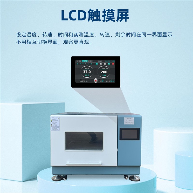 9、LCD觸摸屏,設定溫度、轉速、時間和實測溫度、轉速、剩余時間在同一界面顯示,不用相互切換界面,觀察更直觀;操作界面加密鎖定功能,杜絕重復操作和人為誤操作;可自由設定搖板正轉或反轉;強制對流的風扇常開或自動;擁有數(shù)據(jù)記錄功能,每分鐘記錄一次數(shù)據(jù),可記錄近三個月的數(shù)據(jù),并且可顯示溫度、濕度、速度、光照、CO2濃度曲線,方便數(shù)據(jù)的分析;有USB接口,可將上述數(shù)據(jù)導出并保存