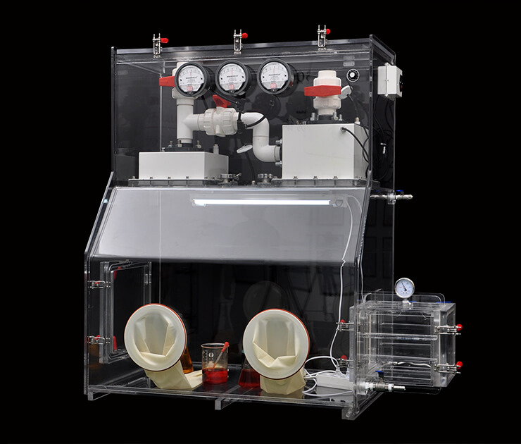 ? 開環(huán)過濾手套箱系統(tǒng)包括入口和出口過濾器。入口過濾器可去除吸入手套箱的外部空氣中的微污染物。出口過濾器可捕獲排氣中的細(xì)小顆粒,從而安全地將廢氣排放到室內(nèi)。單程配置將過濾后的環(huán)境空氣引入外殼,因此不適用于需要低濕度、低氧或類似受控氣體環(huán)境的應(yīng)用;