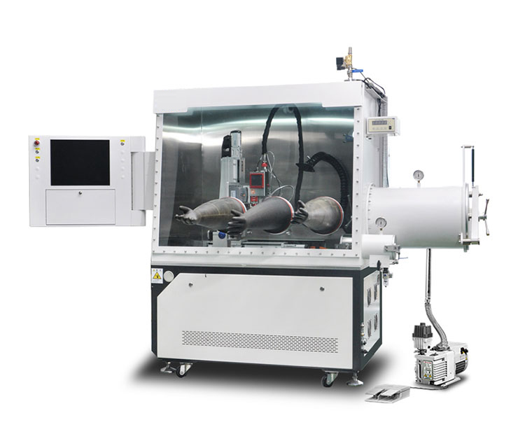 ? 箱體結(jié)構(gòu)是根據(jù)客戶定制生產(chǎn)的,配合焊機操作,帶有顯示觸摸屏,工具儲存抽屜,以及焊機的散熱系統(tǒng)。手套箱帶有一套高效、高性能、高品質(zhì)的自動吸收水、氧分子的氣體凈化系統(tǒng),提供一個純化O?和H?O惰性的氛圍環(huán)境,為焊接工藝提供一個理想的氣氛空間;