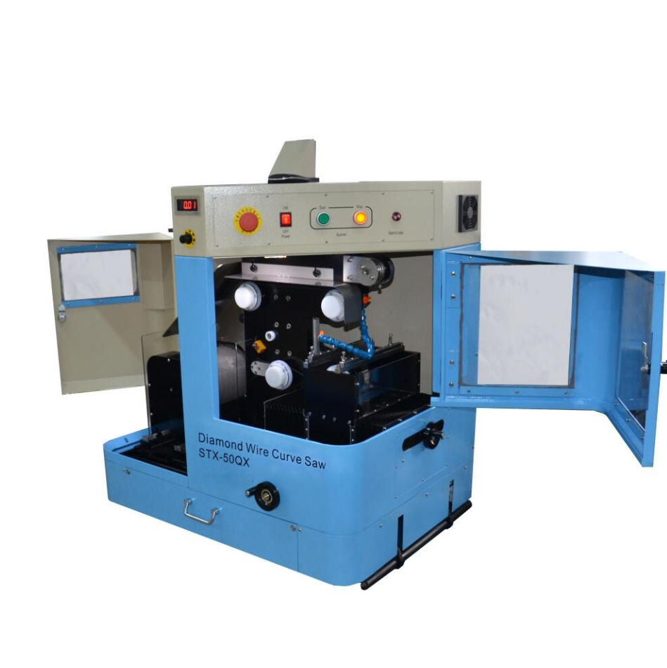 STX-50QX型金剛石曲線切割機(jī)是我公司首臺(tái)使用金剛石線對(duì)非金屬材料進(jìn)行異形切割的設(shè)備。該設(shè)備可通過(guò)電腦繪圖設(shè)置切割形狀,然后金剛石線按繪圖所設(shè)置的路徑行走,