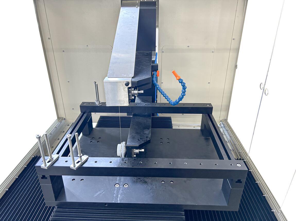 STX-200QX型金剛石曲線切割機(jī)是我公司首臺(tái)使用金剛石線對(duì)非金屬材料進(jìn)行異形切割的設(shè)備。該設(shè)備可通過電腦繪圖設(shè)置切割形狀,然后金剛石線按繪圖所設(shè)置的路徑行走,從而切割出各種不同的形狀。該設(shè)備有效解決了一些難加工材料異形切割的難題,如陶瓷、晶體、玻璃、金屬、復(fù)合材料、巖石、熱電材料、紅外光學(xué)材料、復(fù)合材料以及生物醫(yī)學(xué)材料等進(jìn)行拉伸性能測試試樣的加工。