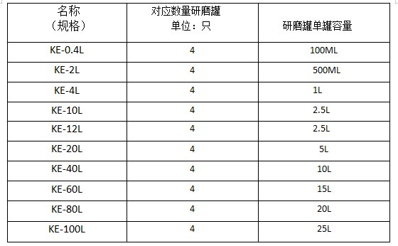 | 型 號(hào) | KE-0.4L | KE-2L | KE-4L | KE-10L | KE-12L | KE-20L | KE-40L | KE-60L | KE-80L | KE-100L |